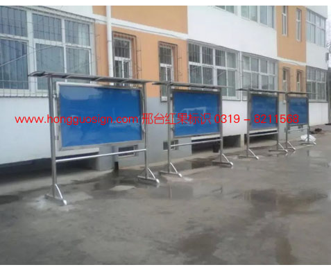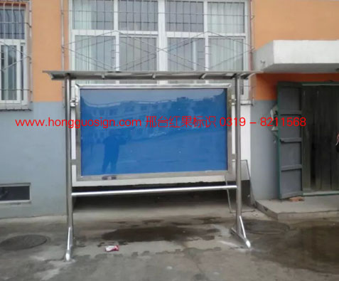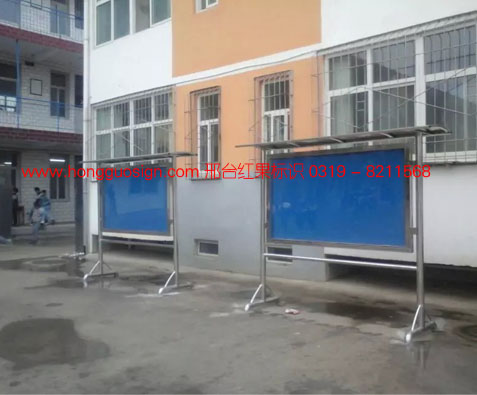 邢台中学不锈钢公告栏,采用优质不锈钢,落地可开启式,是导示系统设计的一部分,简约大方,防雨、防风,适合多种场所。